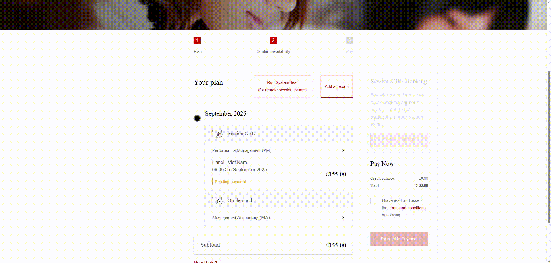 - Lựa chọn môn thi và hình thức thi --> Chọn Add to your plan