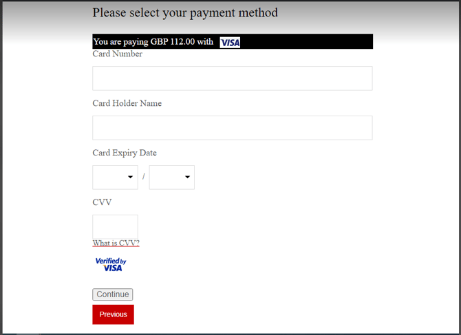 Điền thông tin của thẻ gồm: Card Number --> Card Holder Nam --> Card Expiry Date --> CVC/CVV (mã số mặt sau của thẻ)