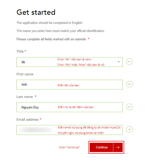 - Điền thông tin về tên, danh xưng và địa chỉ email