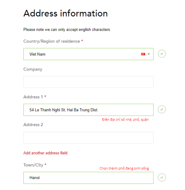 - Điền thông tin về địa chỉ, thành phố đang sinh sống