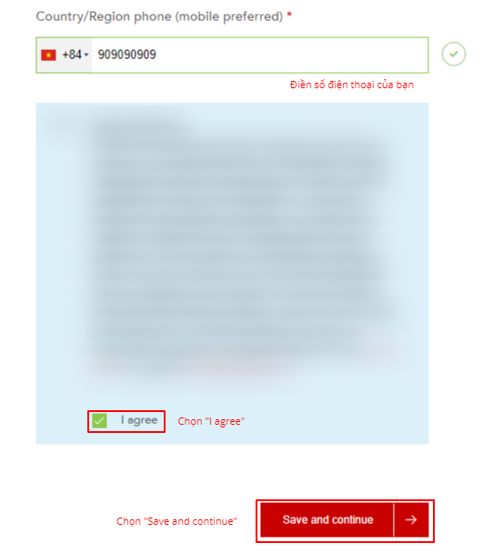 - Điền số điện thoại và đồng ý với các điều khoản của ACCA
