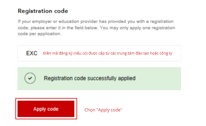 - Nhập mã đăng ký Registration Code được cấp từ các trung tâm đào tạo hoặc công ty (nếu có)