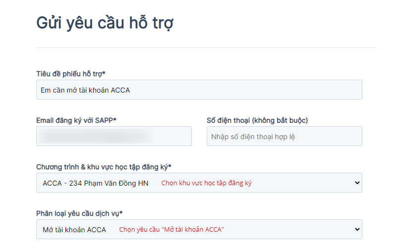 Nếu bạn cần hỗ trợ mở tài khoản ACCA, vui lòng đăng ký tại Phiếu yêu cầu hỗ trợ.