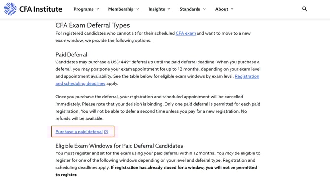 Thông thường viện CFA sẽ mở link đăng ký defer khoảng 4 tuần trước khi bắt đầu kì thi