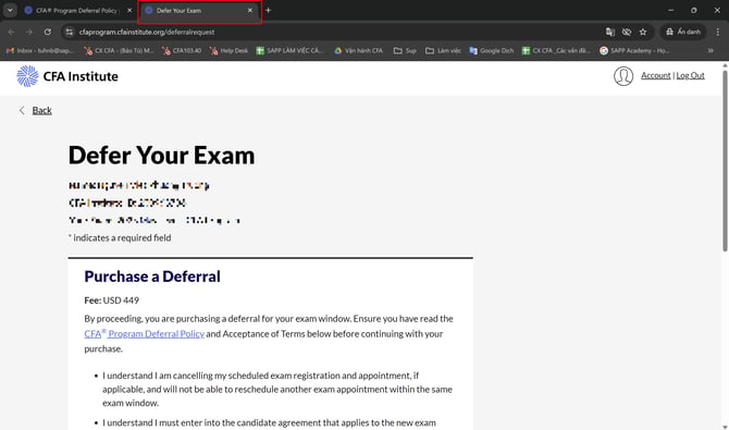 Hướng dẫn các bước hoãn thi (Deferal Request) và đặt lại lịch thi CFA