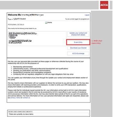 1.3. Sau khi đăng nhập thành công, chọn mục Exam Entry.