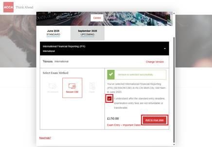 2.7. Lựa chọn môn thi và hình thức thi --> Chọn Add to your plan