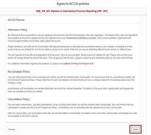 3.2. Lựa chọn môn thi đăng ký để xác nhận thời gian và địa điểm. Chọn Agree với ACCA