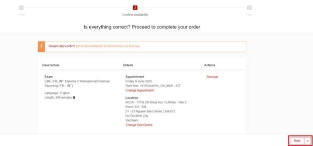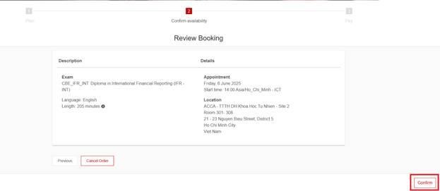 3.1. Click vào "Confirmation Availability" để xác nhận địa điểm thi và thời gian thi