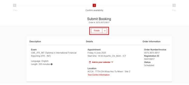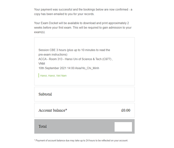 Sau khi thanh toán thành công, hệ thống sẽ hiển thị xác nhận đăng ký thi.