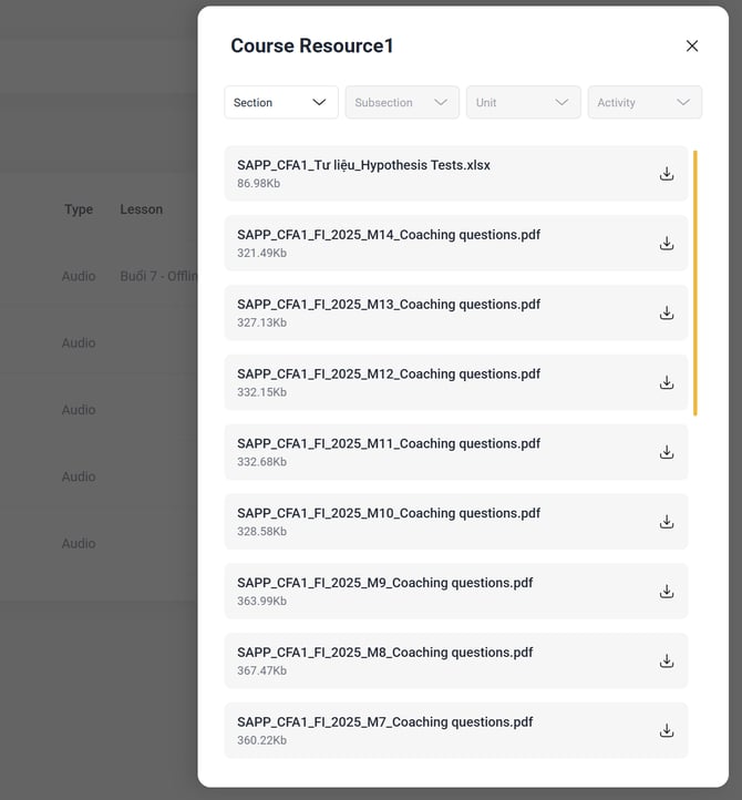 - Nếu không thấy nút tải, có thể khóa học chưa mở phần tài liệu vui lòng liên hệ bộ phận hỗ trợ để được kiểm tra.