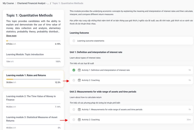Ở các Activity 2: Coaching (Dành cho khóa học CFA Level I)