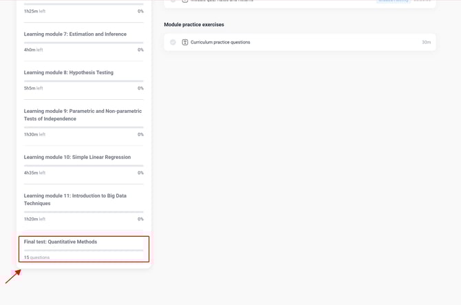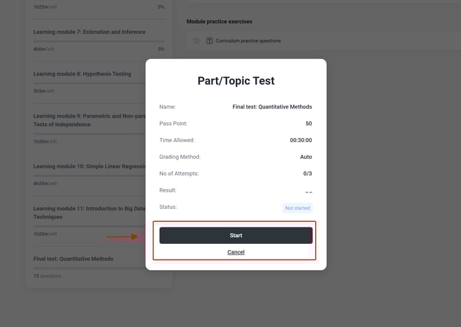 Tại giao diện nội dung môn học, dưới Learning Module cuối cùng và chọn mục Final test