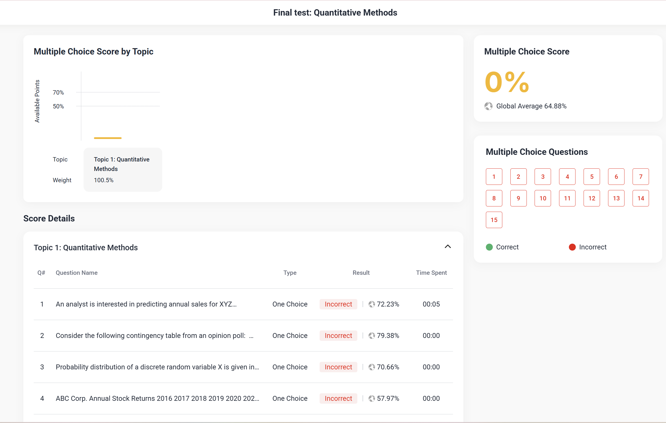 - Sau khi hoàn thành Quiz và bài Final Test kết quả sẽ hiển thị ngay khi học viên bấm nộp bài