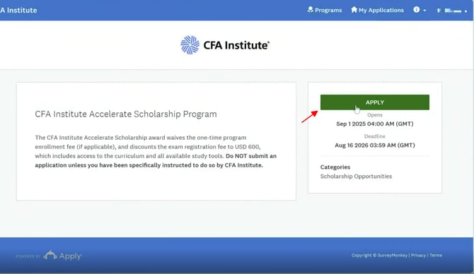 Lưu ý: Học viên vui lòng đọc kỹ email từ CFA Institute để nắm rõ các lưu ý và hướng dẫn liên quan đến học bổng.