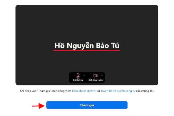 Bước 4: Tiến hành vào phòng học trực tuyến