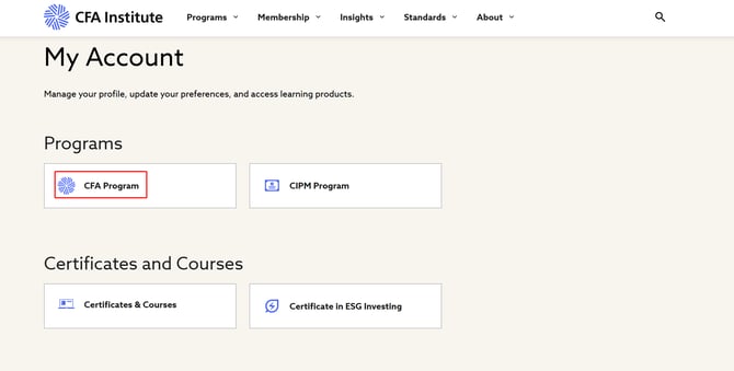- Bước 3: Ở giao diện "My Account" bạn chọn "CFA Program"