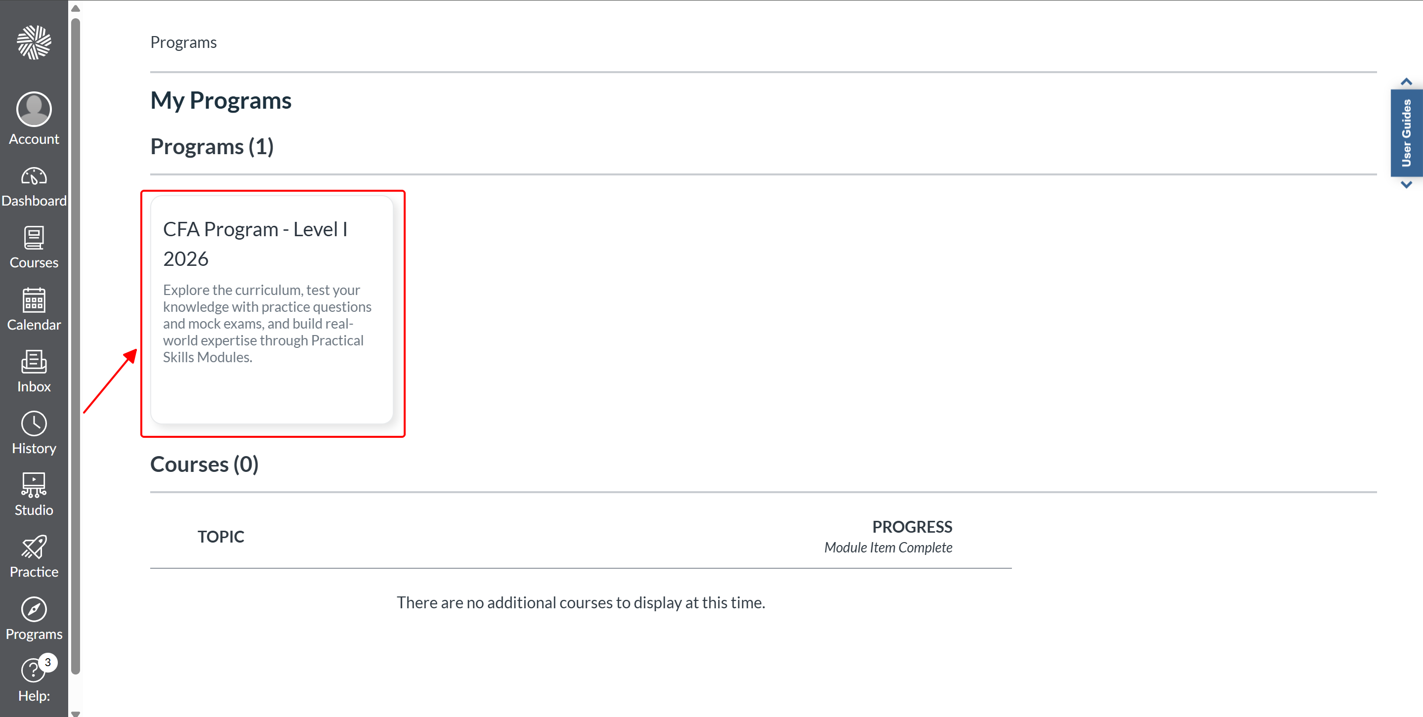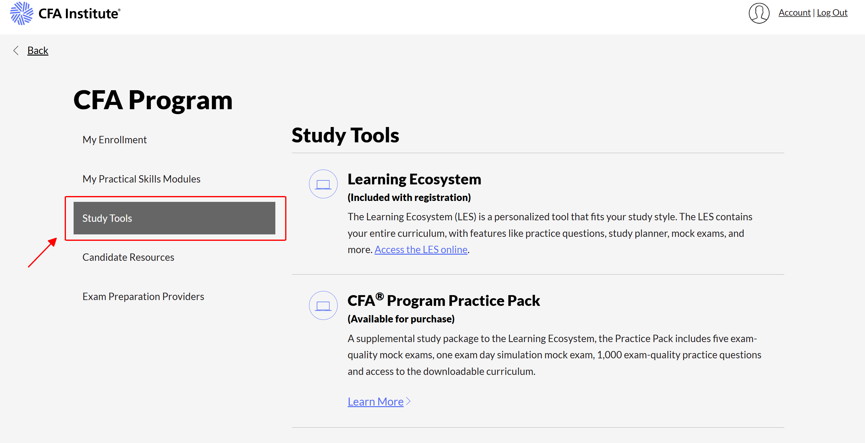 - Bước 4: Tại giao diện "CFA Program" bạn chọn "Study Tools"