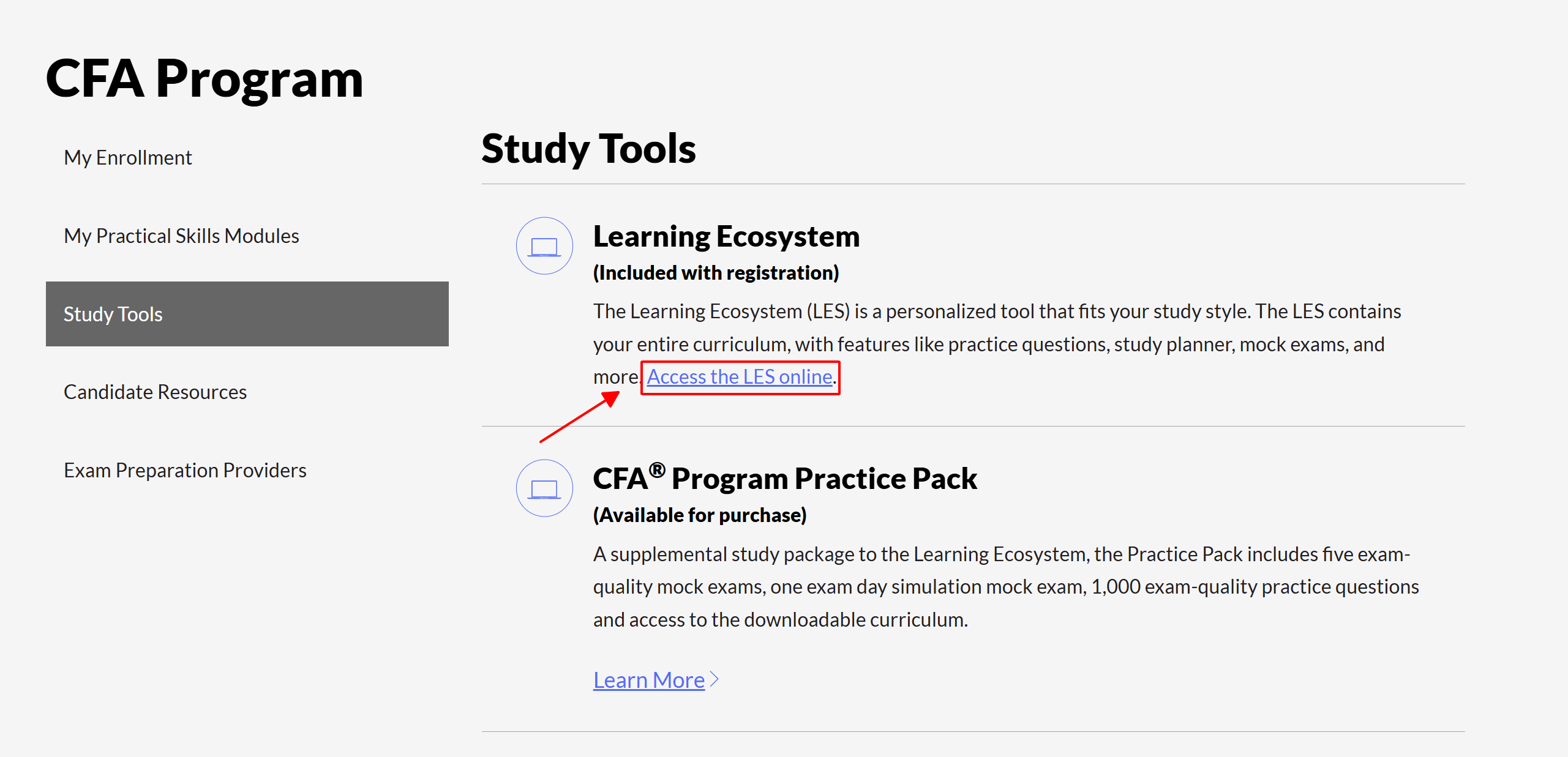 - Sau khi đăng ký kỳ thi CFA và hoàn tất thanh toán, bạn sẽ được cấp quyền truy cập LES trong vòng 14 ngày.