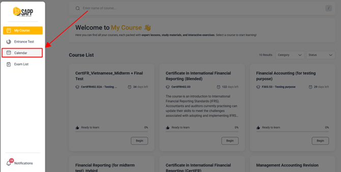 2.1. Tại giao diện Menu, học viên vui lòng click chọn Calendar ở thanh điều hướng phía bên trái
