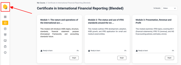 Bấm vào Logo SAPP phía trên góc trái màn hình để trở về giao diện các khóa học như Hình 1 và chọn khóa học tương ứng cần truy cập vào.